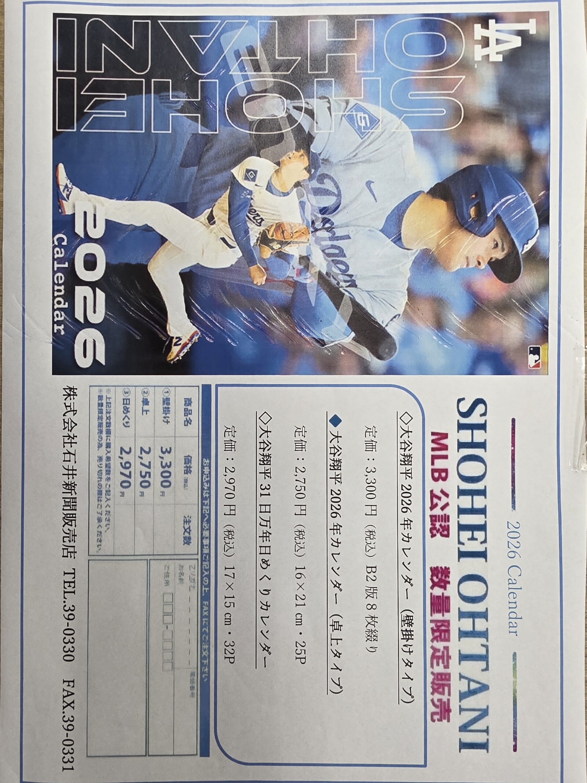 2026年大谷翔平カレンダー限定発売中