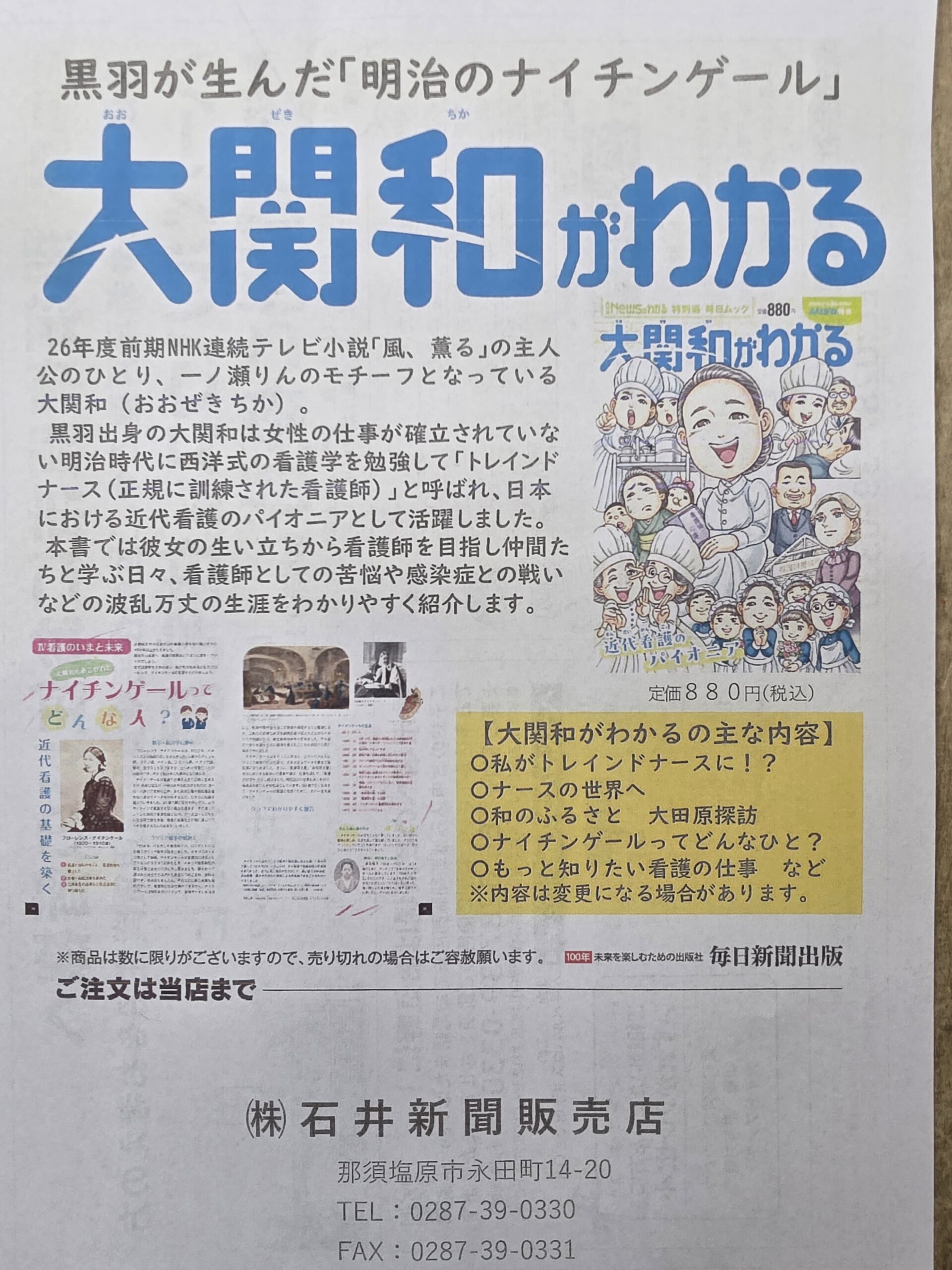 黒羽出身 明治のナイチンゲール 大関 チカの本880円 絶賛販売中!